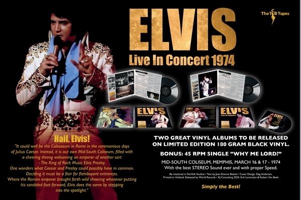 Good news for vinyl collectors and live music enthusiasts: the long-awaited release Elvis – Live in Concert 1974 on the World Records Label is on its way to our warehouse and available from stock via ShopElvisMatters.