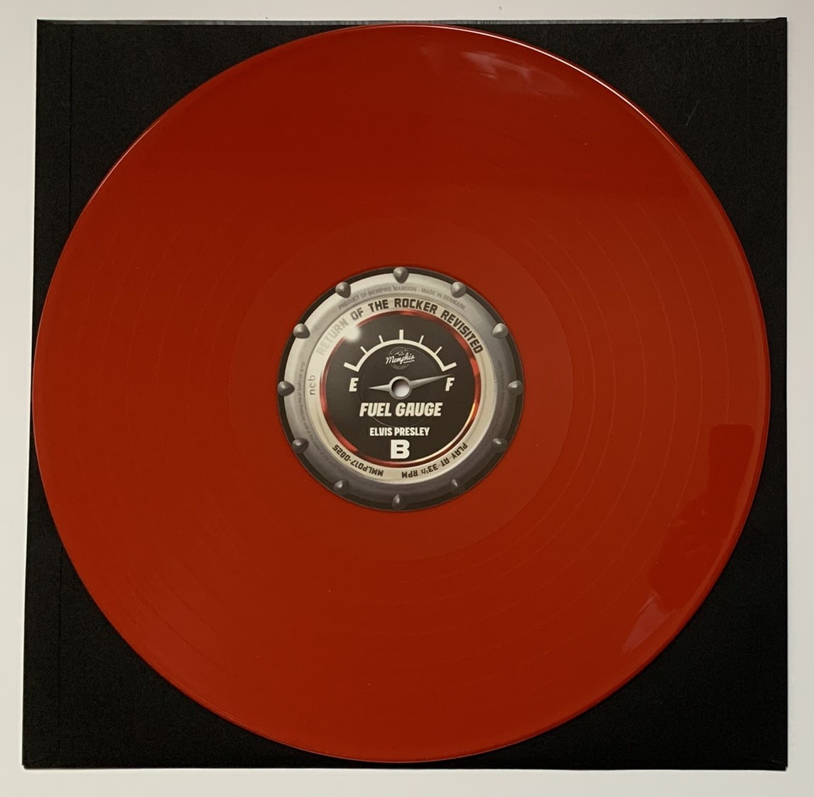 In 1986, RCA released the follow-up to "Elvis Rocker": "Elvis Return Of The Rocker." The Memphis Mansion Label repeated this with a Revisited version. This 33 RPM record features the songs as they appeared on the 1986 LP, but now in stereo. It also includes bonus tracks. The 1986 cover shows Elvis sitting on a Harley Davidson, similar to this 2025 version, but in a completely different format. The back of the cover also features a completely different image. Pressed on beautiful red vinyl, the label features a fuel gauge. A clever touch! The vinyl disc is packaged in a high-quality inner sleeve with optimal protection.