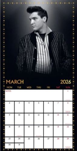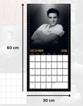 This square Danilo Elvis 2026 Calendar is printed on glossy paper, as usual, and features 12 beautiful photos of Elvis. There's ample space beneath each photo for you to jot down your own notes. When unfolded, the calendar measures approximately 60 x 30 cm. A hole is provided so you can easily hang it on the wall.