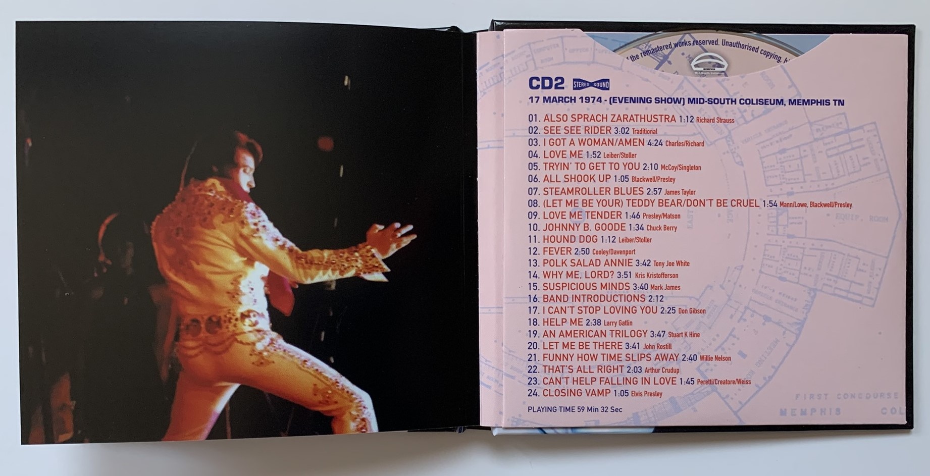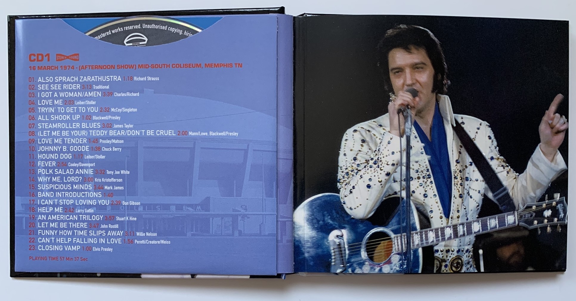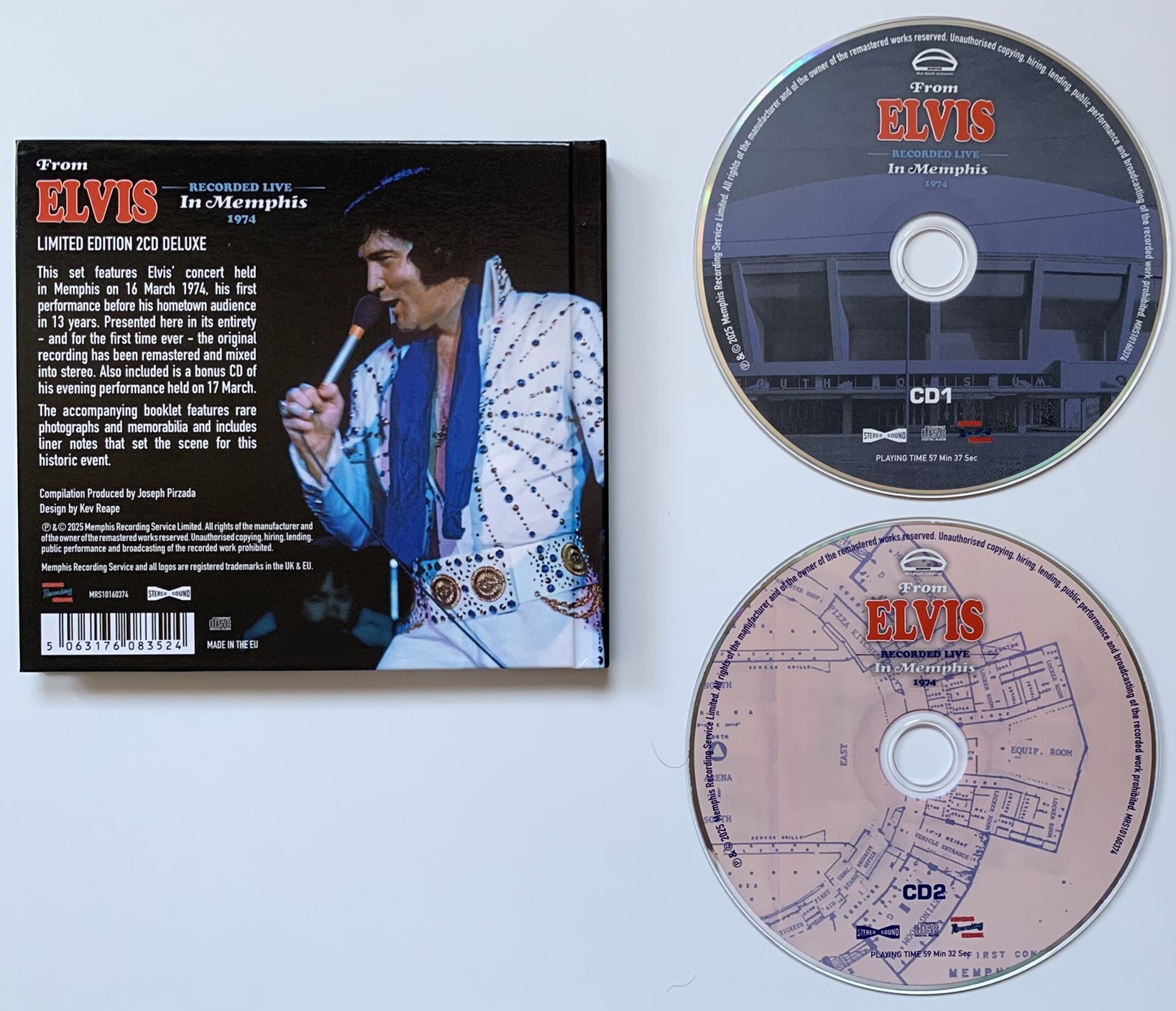 The 2CD Deluxe contains the complete recordings of Elvis' performances on March 16, 1974 (afternoon show) and March 17, 1974 (evening show) at the Mid-South Coliseum in his hometown of Memphis. For Elvis, this meant his long-awaited return to a concert stage in Memphis, fourteen years after his last performance in the city. Both shows have been completely remastered and mixed in stereo. According to MRS, this is their best mix to date, which also comes very close to the original RCA release of the final part of this series of concerts.