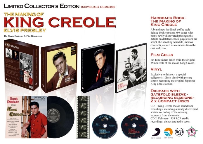 In addition to 2 new CD Sets, FTD released a new book: The Making Of King Creole A brand new 380-page hardcover luxury book featuring many newly discovered photos, details of deleted scenes, pages from the script, the shooting schedule, memos, contracts and reminiscences from the cast and crew.