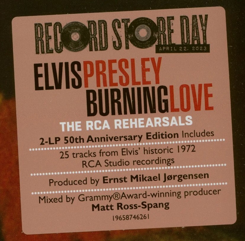Elvis Presley Burning Love The RCA Rehearsels - RCA Vinyl RSD 2023