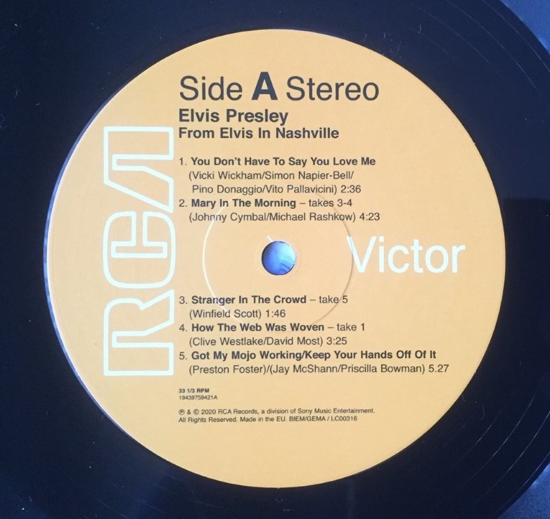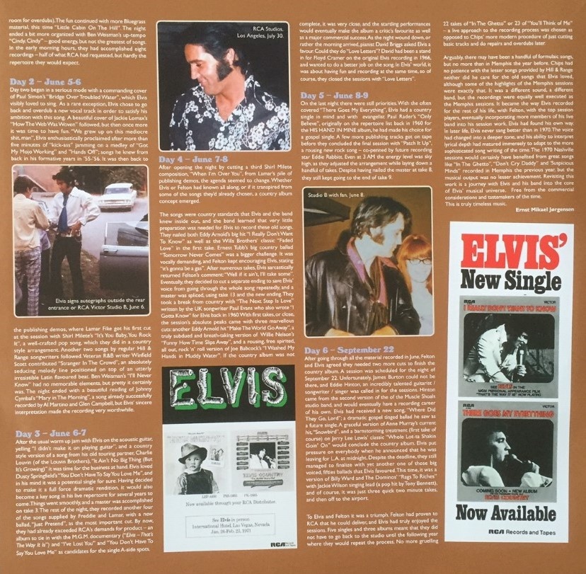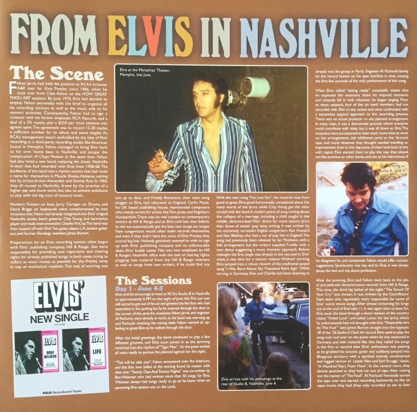 From Elvis In Nashville. Een 2 LP Vinyl-Set welk de opnamesessie van Elvis van juni 1970 in Nashville onder de aandacht brengt. In 2020 is het vijftig jaar geleden dat Elvis één van de meest productieve sessies afwerkte. In Nashville, Studio B in Music Row. Songs van deze sessie zouden op diverse LP's belanden : Elvis, That's The Way It Is, Love Letters en natuurlijk Elvis Country. Op deze From Elvis In Nashville release worden voor de eerste maal de songs gebracht zonder de later toegevoegde overdubs. Dus zoals Elvis ze in 1970 in de studio B in Nashville opnam.