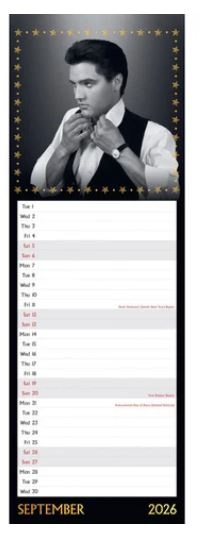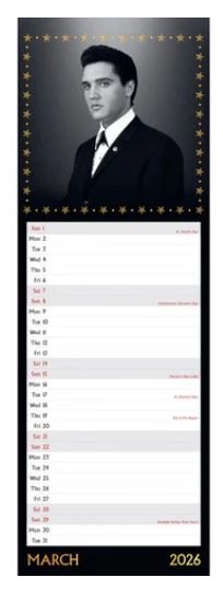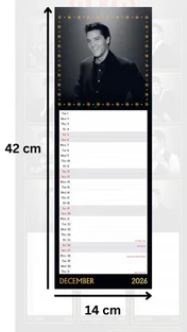Deze Danilo Elvis Kalender 2026 in het zogenaamde Slim formaat is zoals gewoonlijk gedrukt op glanspapier. Dit smalle formaat heeft het voordeel dat je hem zelfs in een kamer met weinig vrije muurruimte kan hangen. Onder elke foto is voldoende schrijfruimte waarop je zelf notities kan maken. Deze kalender ca. 42 x 15 cm. Er is een metalen spiraal met haakje voorzien zodat je hem zonder problemen aan de muur kan hangen.